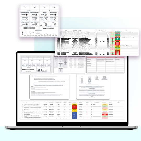 Your productivity partner. Our customizable, user-friendly spreadsheets simplify office management, allowing you to handle tasks like a pro. Keep everything organized for easy tracking and maintain a clear overview of every task.