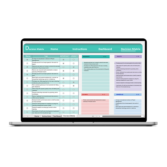 Categorize tasks into "Do Now," "Schedule," "Delegate," and "Delete" based on urgency and importance.